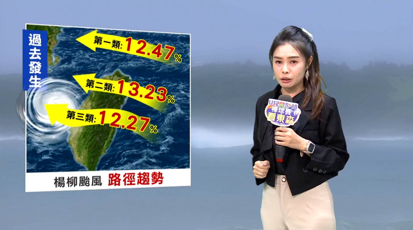 午後熱對流發展旺盛,大台北一度下起大雨,未來天氣會更不穩定。因為楊柳颱風預報路徑變數多,歐美模式還有氣象署都預測可能是穿心颱;日本氣象廳則預測會成西北颱。綜合各國預測路徑,對照氣象署針對過去影響臺灣的颱風路徑分類,它走第一類、第二類或是第三類機率都有,其中如果走第一類的話,恐怕是令人聞風喪膽的西北颱。