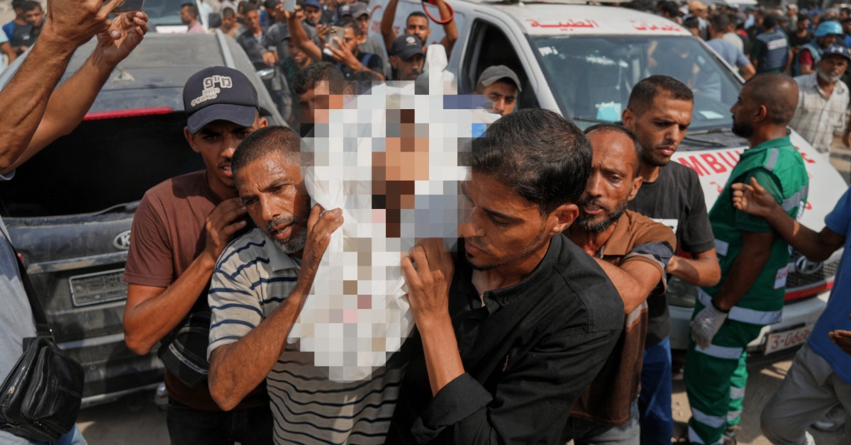 已故加薩特派記者夏利夫報導:「我們現在正在靠近這間學校,這裡剛剛發生一場殺戮,醫護人員正在搬運遺體,現場遍佈著屍體與殘肢,這是一場大殺戮。」