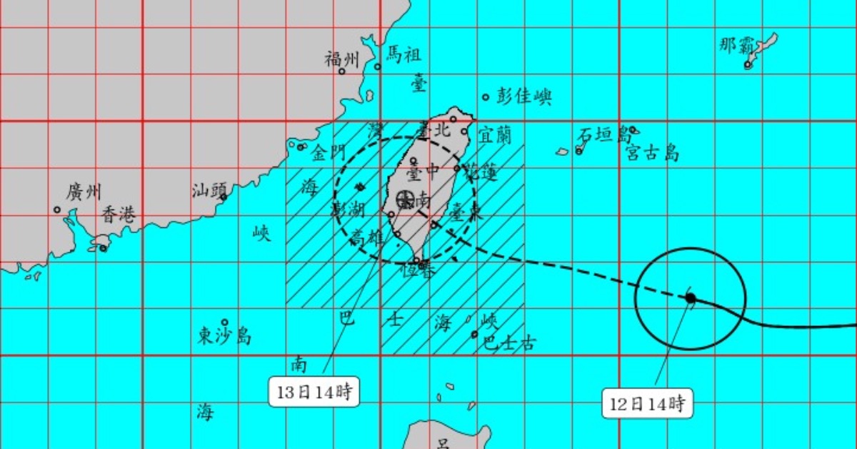 風力方面,氣象署指出,明天凌晨0時至清晨6時,蘭嶼與綠島的平均風速將由4至5級增強至7至8級,陣風可由6至7級飆升至10至11級,同樣符合停班停課的風力標準。該標準規定,若預報顯示颱風暴風半徑在4小時內可能通過,且平均風速達7級以上或陣風達10級以上,地方政府即可依情況宣布停班停課。