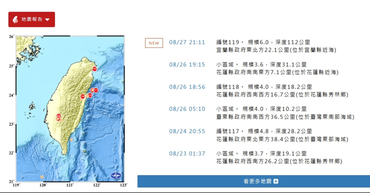 27日21時11分發生芮氏規模6.0有感地震,北部民眾超有感,地震專家郭鎧紋接受《EBC東森新聞》採訪時指出,這是發生在隱沒帶的地震,而先前緬甸發生8.2強震「喚醒」地球,使地球進入地震活耀期,他也以3點分析目前觀察到的現象。