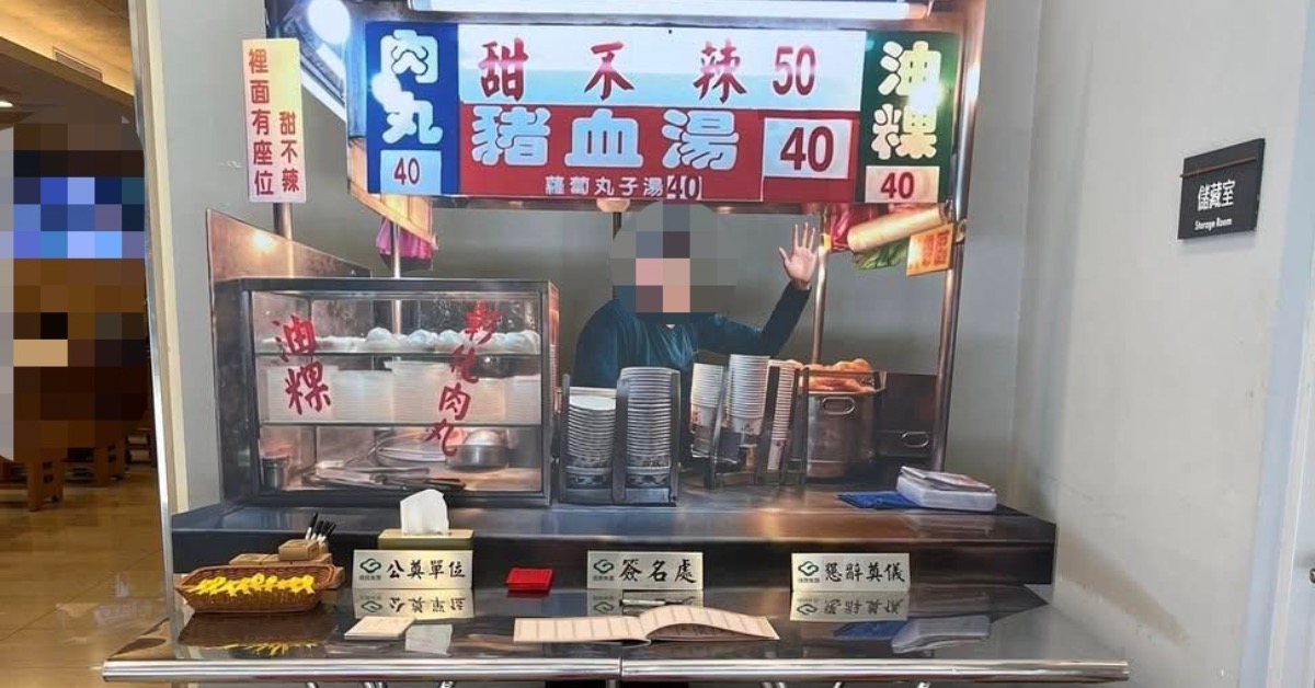 一名網友今天在臉書社團「靠北天母幫」分享曹老闆的告別式現場照片,畫面顯示靈堂外特別佈置成平日擺攤模樣,擺上甜不辣、肉圓、豬血湯等招牌品項,簽到處更放置熟悉的攤位桌椅,搭配老闆照片中招牌笑容,令許多網友鼻酸。