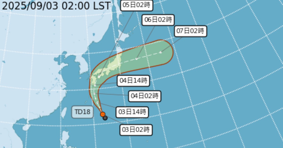 氣象粉專「觀氣象看天氣」表示,在未來的24小時內,TD18號有機會成為今年第15號颱風「琵琶」,且未來路徑趨向日本九州,一路前往關東地區,粉專提醒,若想在4日至5日時前往日本,需多加留意天氣狀況。