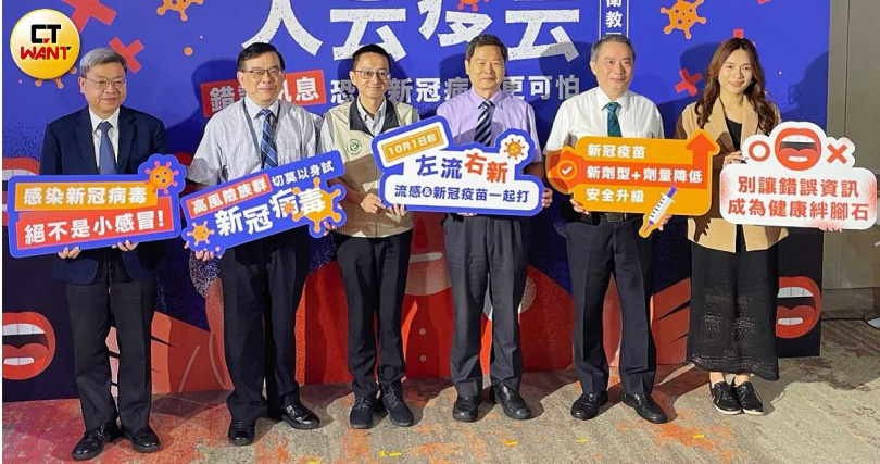 台灣感染症醫學會、台灣感染管制學會、台灣病毒暨疫苗學會及台灣事實查核中心今天舉辦「人云『亦』云,錯誤訊息恐比新冠病毒更可怕」衛教記者會。(圖/CTWANT提供)