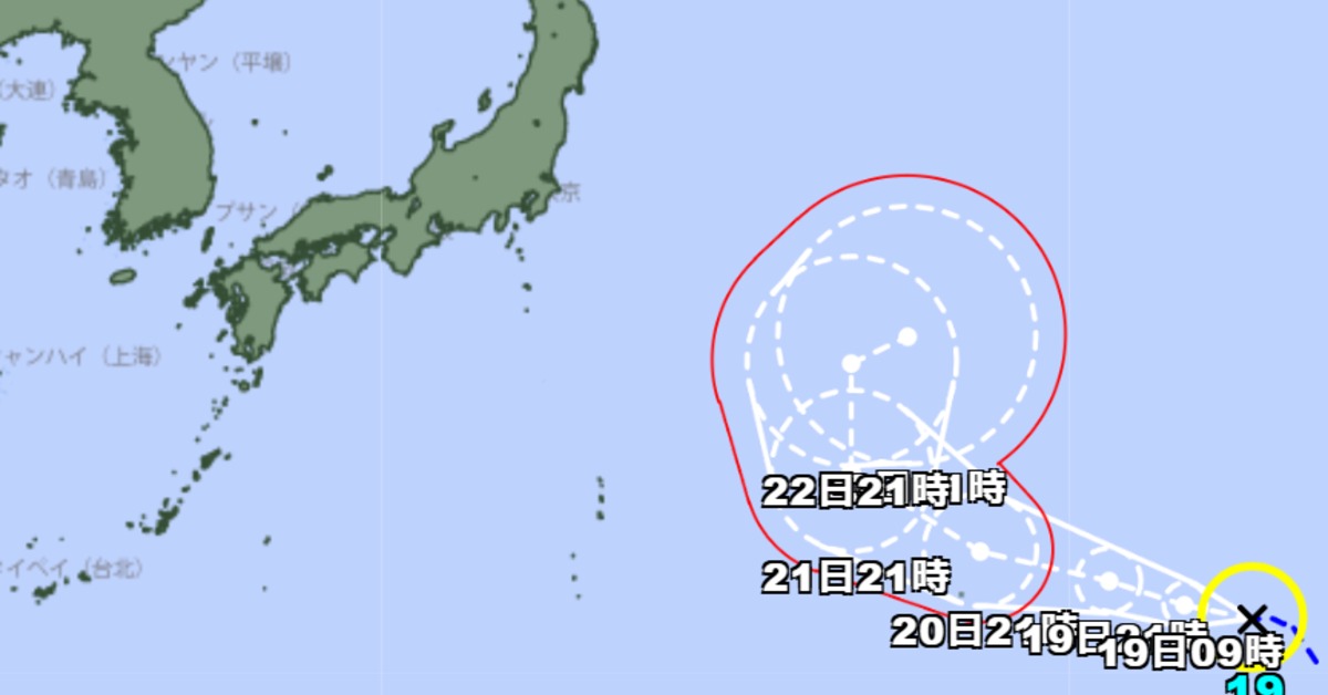 TD22增強為今年第19號颱風「浣熊」。(圖/翻攝自日本氣象廳)
