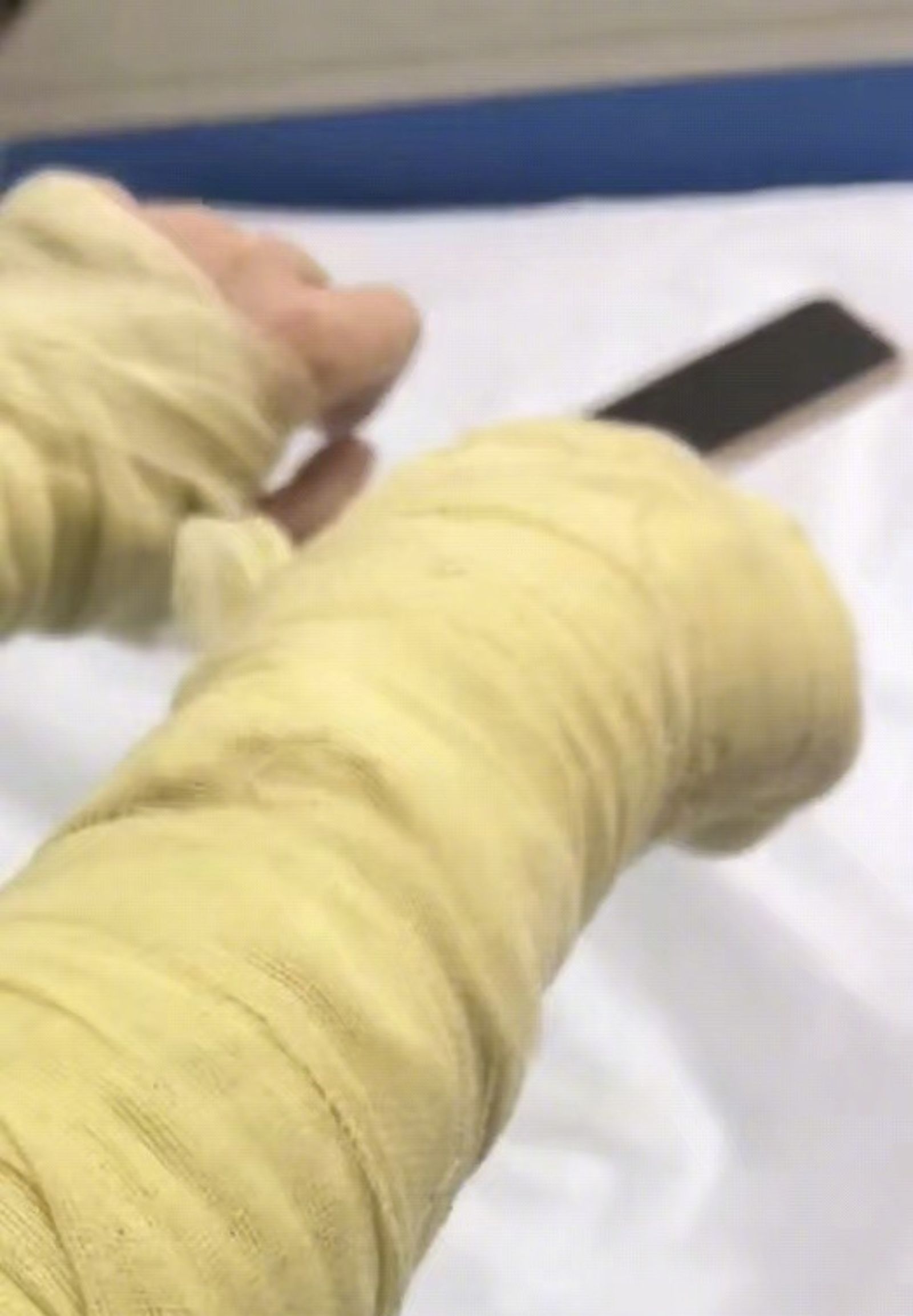 思思雙手纏滿繃帶。(圖/翻攝抖音@Shushuy918)