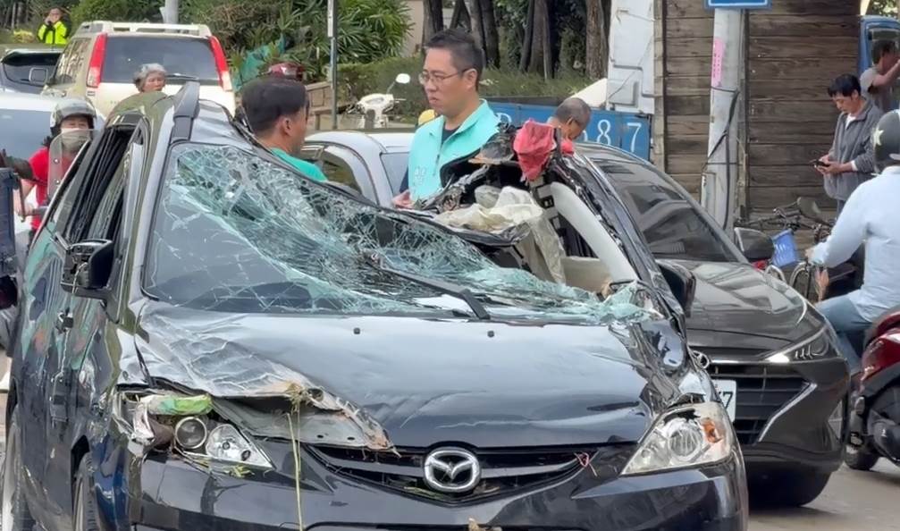 車輛遭軍車輾過。(圖/東森新聞)