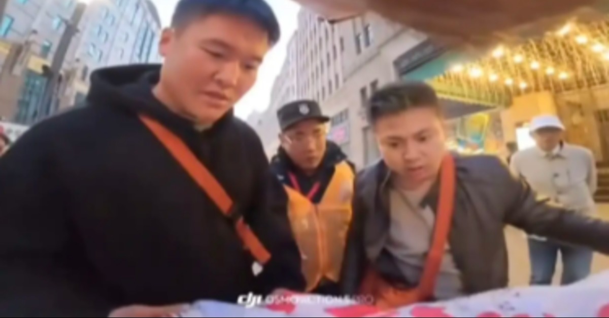 上海遊客準備在和平飯店外架起自拍腳架,想和布條旗子合影。他從站定位到攤開布條,整個過程不到 10 秒鐘,突然就有人衝上前。男子描述,當時兩名穿著和一般遊客無異的男子突然伸手抓住布條,用力往下拽,嚇得他不知所措。對方疑似當地公安,對布條拍照行為相當警覺。