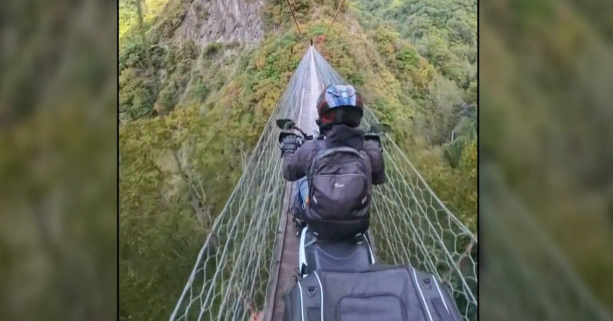 一堆重機車友都來挑戰力行吊橋,因為直線加速不能停,連騎1分鐘懸在百米高空,根本極限挑戰,需要高超技巧跟強心臟,否則一不小心倒車就是墜谷傷亡。