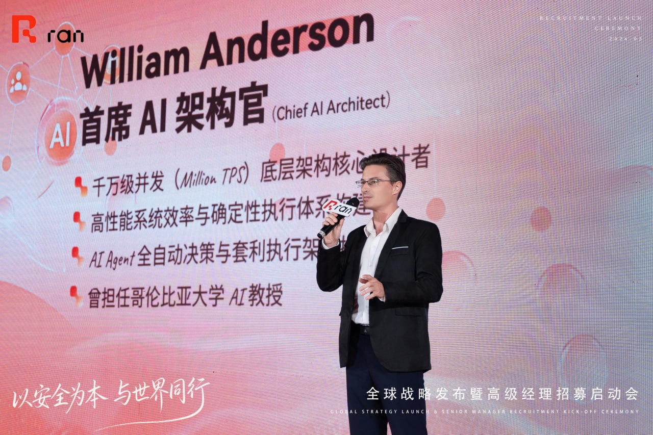 本次大會圍繞 AI 量化技術、全球合規布局以及生態戰略發展 等核心議題展開,全面展示了潤安 RAN 作為 AI 資金費率套利執行平台 的技術能力與全球化戰略願景。