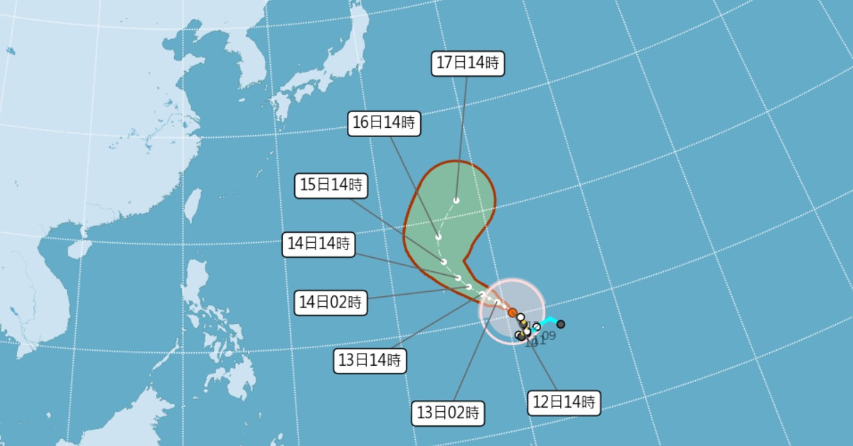 根據中央氣象署資料,強烈颱風辛樂克12日14時的中心位置在北緯10.3度,東經150.6度,以每小時17公里速度向西北進行。